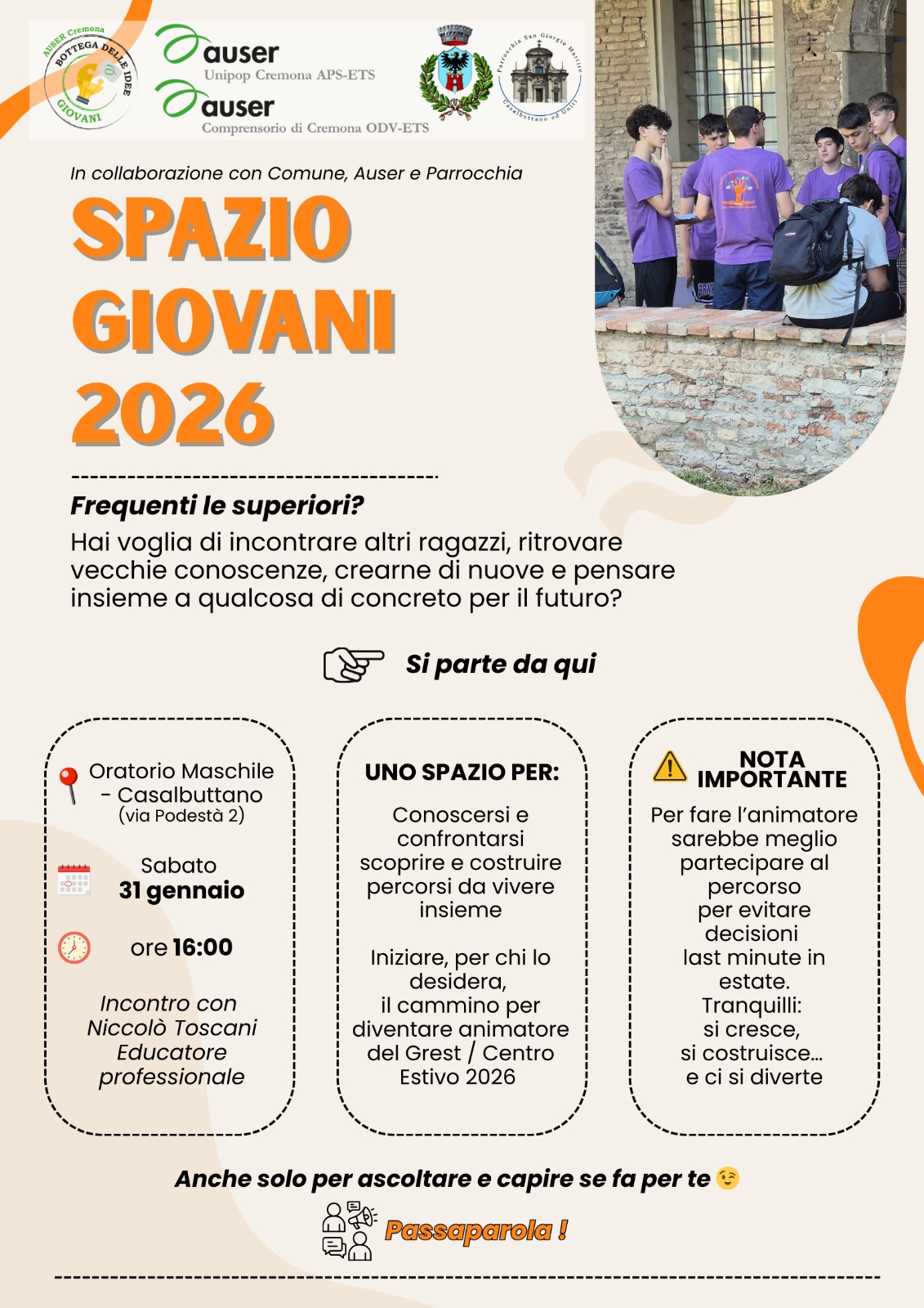 sabato 31 gennaio 2026 alle ore 16,00 presso l'Oratorio Maschile